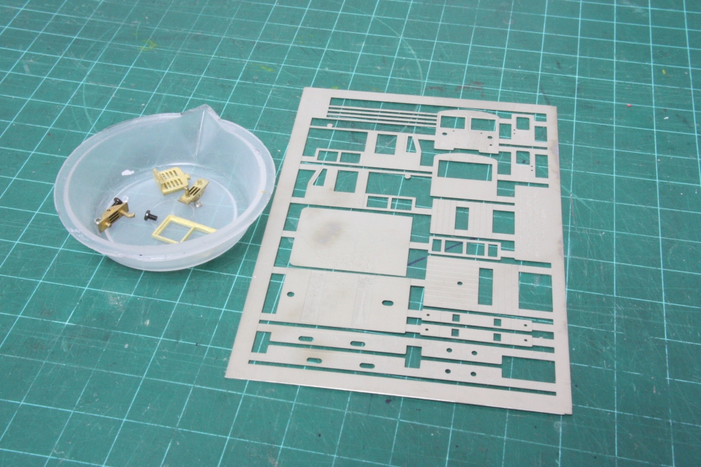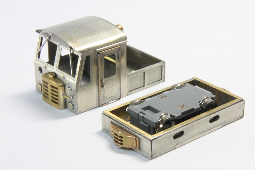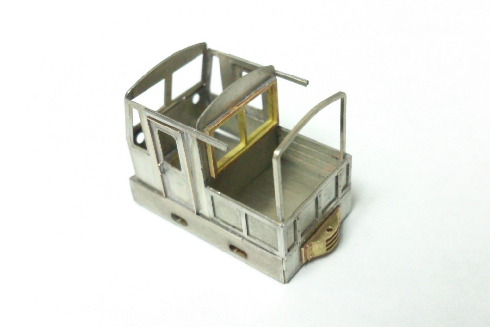 モーターカーNo.18改(1) Category:木曽のモーターカーNo.18改造(1/87 9mm) Date:2012年09月16日 ある方から貴重な木曽のモーターカーNo.18のエッチング板をお譲りいただく好機に恵まれました。 うれしくて、他の仕掛り品をほっぽりだして製作に入りました。 キットの板厚は0.3mmの洋白。 あとはボンネット・後窓枠・連結部のロストパーツにライトリムが入ってました。 しかし、この板、ゲートがめっちゃ太いぞ。 不用意にニッパーを入れると簡単に曲げてしまいそうなので、外枠に糸鋸を入れつつ慎重に切り出しです。 トリセツに従ってここまで組みましたが、このキットは屋根が難物。 屋根板パーツは片面エッチングで板厚0.1mm程度まで薄くなっています。 案の定うまく曲げることができずにキットの屋根パーツはオシャカに。 ここで、いつもの悪いクセで「このまま説明書通り作るのやめて改造しない?」と脳内ササヤキが…。 ということで…。 ハイ、ドアレールと後部屋根ステーを取っ払って、「軽トラ」スタイルに。 ワイパーは本来は窓下につけるのですが、窓上に変更。 なんとなく、 顔つきをしょぼーん(´・ω・`)っぽくなるように改造。 いや、特に意味は無いんだが。 台枠は1mm厚の真鍮帯板で、重量アップを狙いつつ頑丈になるようにハコ組み。 動力化には、こちらを参考にKATOポートラム動力の直結改造品を使います。 改造したKATOポートラム動力はこちら。 一度分解し、モーターからの線を車輪とギアステーを兼ねる集電板に直接ハンダ付けしています。 トップをフラットにしましたので、車体には両面テープで張り付ければOKです。 ということで、生地完。 こうしてみると、このキットは絶妙なデザインでショーティアレンジされていますね。 リアビューが可愛いすぐるぜ。 後方ヘッドライトは浜リンさんの挽物を採用。 さて色はどうする? PR http://akinoritb.tou3.com/Entry/11/モーターカーNo.18改(1)