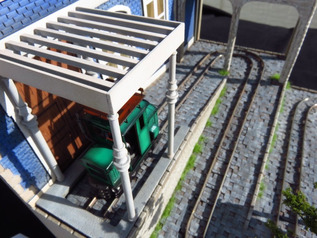 自動往復パイク "Ironika Hill Hotel"(完成編) Category:Ironika Hill Hotel(1/48 9mm) Date:2016年10月10日 自動往復パイク その名も"Ironika Hill Hotel"。完成編です。 レイアウトの裾にはバルサ材のモールをマホガニーで染めて台座に額縁方式で貼付けました。ちょっとしたことですが、見栄えに差が出ますね。 屋外に持ち出して撮影。待合所。 俯瞰で見るとえらい苦労した石畳の軌道にストラクチャの影が落ちて、いい雰囲気。作業が報われる瞬間です。 つづら折りの坂道は結構な勾配だったりします。 エントランスの柱は、ミニアートのプラモデルキットから。左右にも街並みのパネルが必要だったかもしれんなぁ。 エントランスの屋根は透けて見えるようスノコ状に。近所のショッピングセンターにこういう屋根というかゲートがありそれをまねしてみました。 テラスのオープンカフェから、軌道を見下ろす。模型の世界ならではのシュールな光景ですな。以上、ご覧いただきありがとうございます。ではまた。 PR http://akinoritb.tou3.com/Entry/121/自動往復パイク "Ironika Hill Hotel"(完成編)