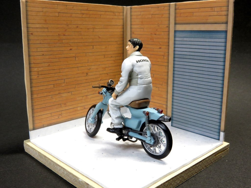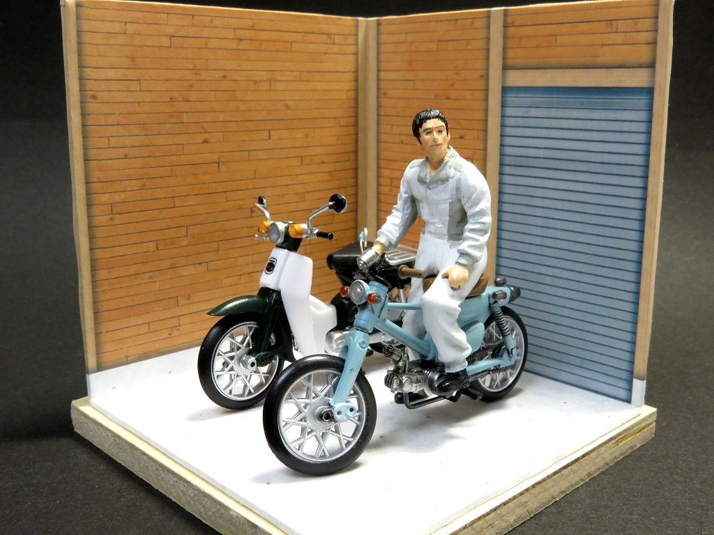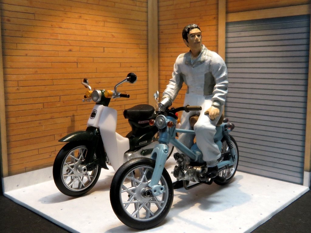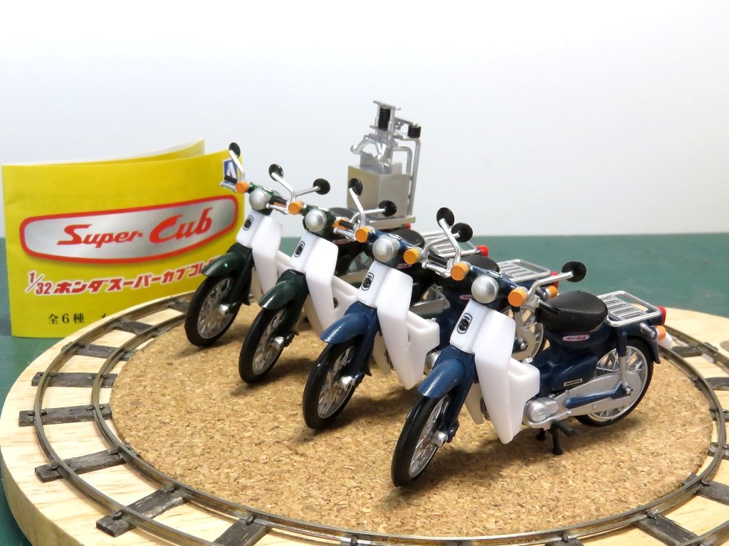 アオシマのカプセルトイ、1/32スーパー・カブを改造してカブカスタムで遊びましたヨ。