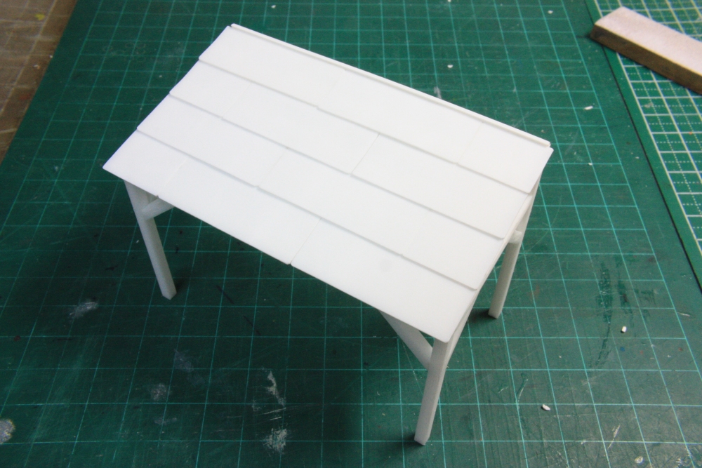 本体は硬質発泡塩ビ板でしたが、車寄せの軒先はプラ板加工です。