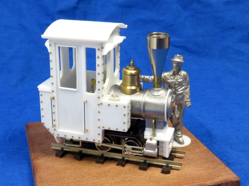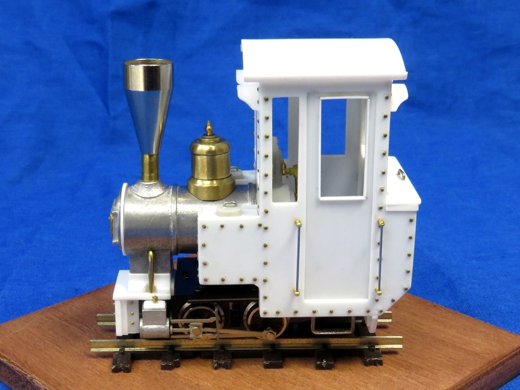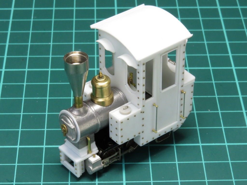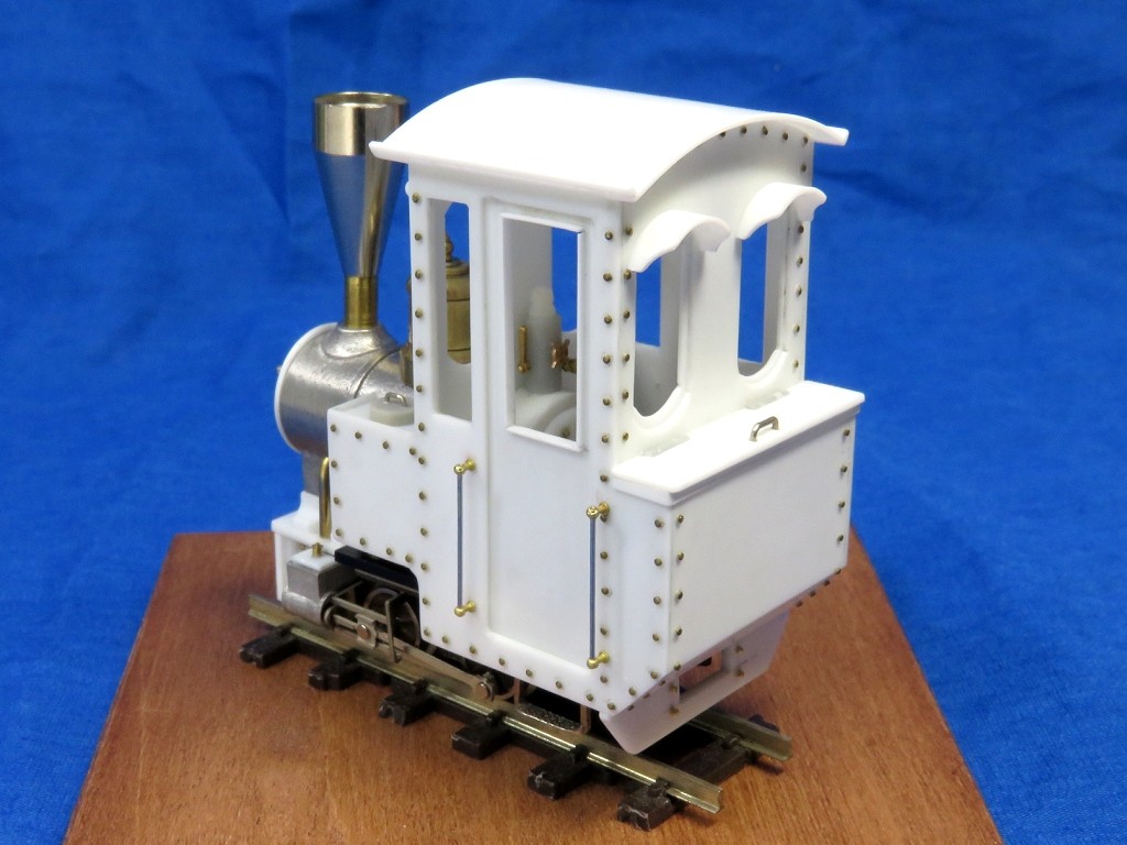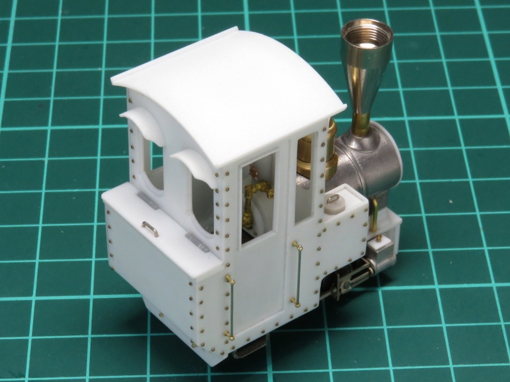 というワケで継ぎ目もなくキレイな屋根が出来ました。前後面の窓にはヒサシをつけたらグッとかわいらしい雰囲気に。リアのコールバンカー上部は開閉式のフタになっているという設定で造型。これで石炭積まなくていいや。