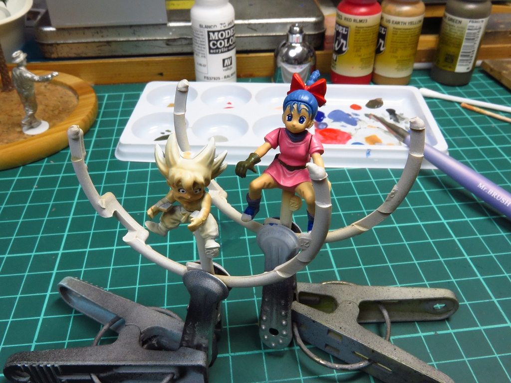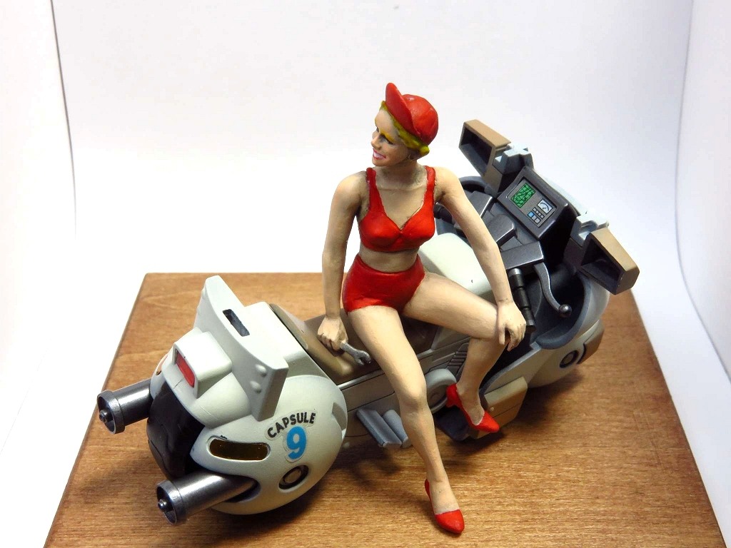 ちゃんとブルマと悟空も入ってますので、最近辛くなってきた目を酷使しつつアクリルで筆塗り。バイク本体の塗装に比べて、数倍大変だよぉ。