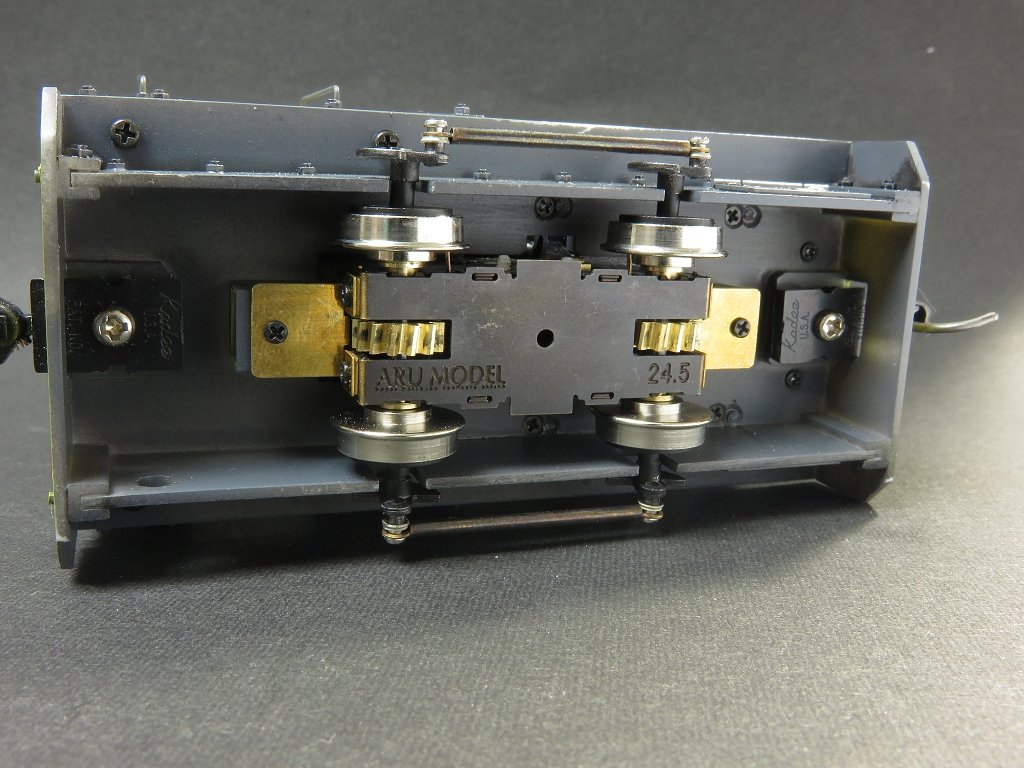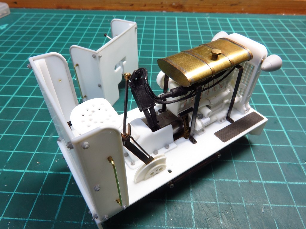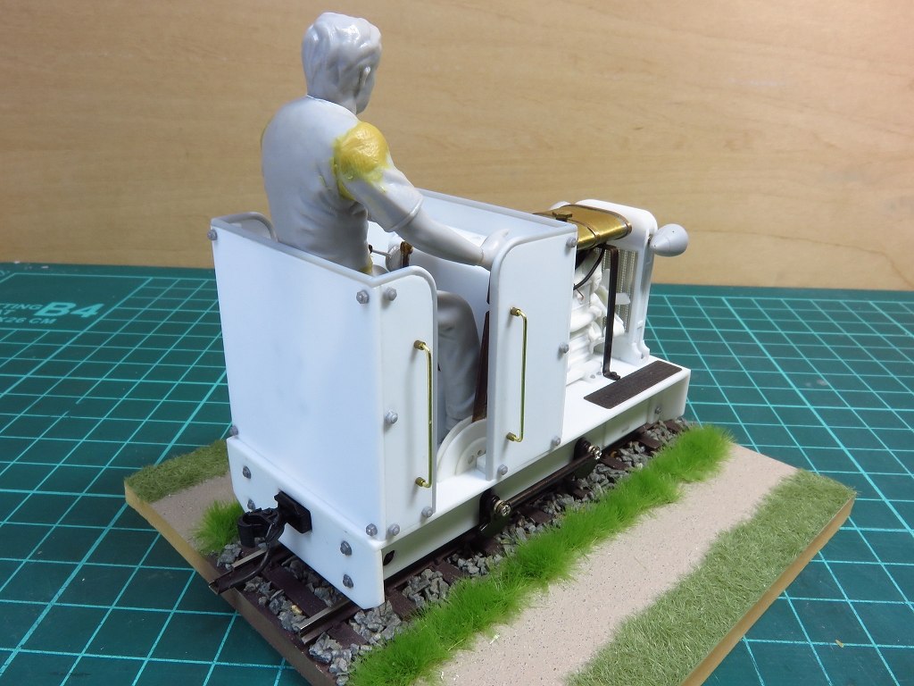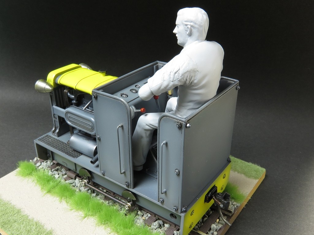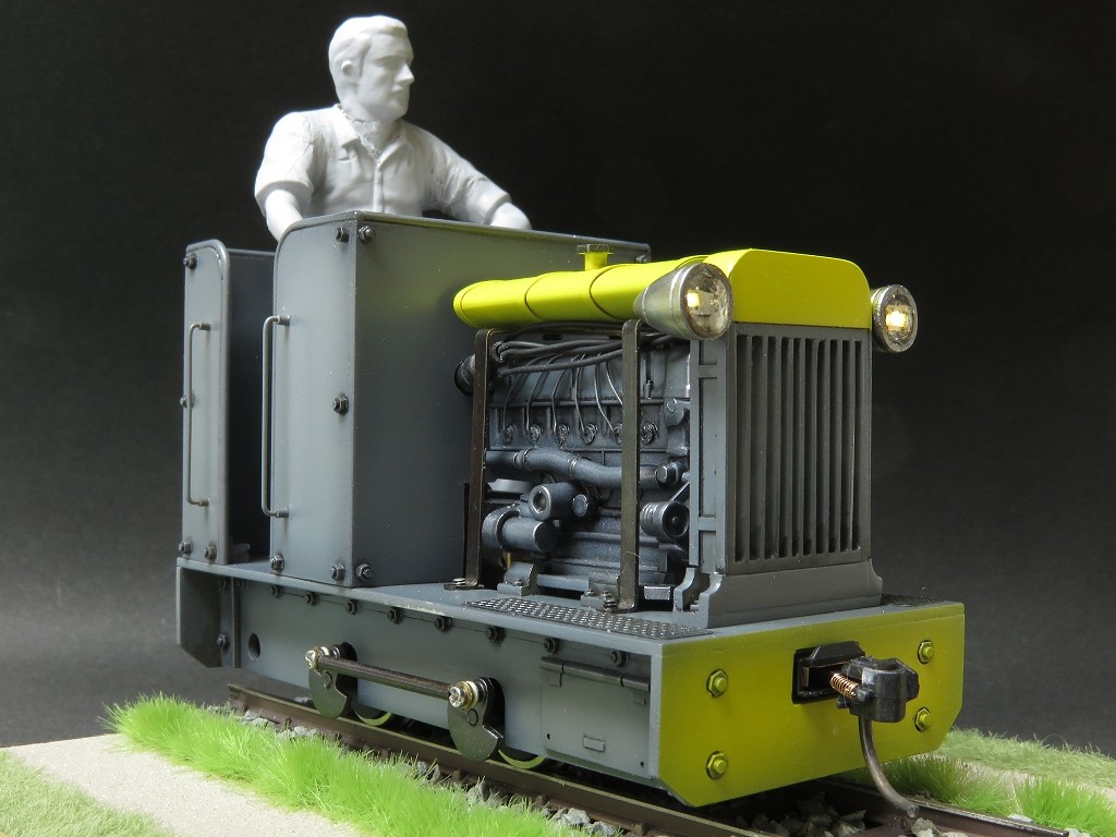 Gn15ガスロコ Category:Gn15ガスロコ(1/24 16.5mm) Date:2017年10月09日 今回はとうとうGスケールに手を出してしまいました。縮尺はプラモ流用を考えて、1/24スケールで行くことにしましたヨ。 今年の軽便祭では、「蒸機以外のロッド駆動式の機関車」というのがクリッターズ・クラブのテーマ。しかしウチには該当する機関車はありません。とりあえずスクラッチすることにしたのですが、せっかくならば新しいことをしましょ!ということでGn15※のガスロコを作ってみることにしました。※ちなみにGn15ってなんじゃい!という方は、こちら(https://en.wikipedia.org/wiki/Gn15)とか、こちら(http://forum.gn15.info/)をご覧あれ。 Gn15ということで1/24のエンジンが入ったのフジミのプラモデルを買ってきました。どうやら日産フェアレディ240ZとハコスカGT-Rのエンジンのようです。と言うか、該当プラモのエンジン関連のランナー部分だけ切りとってキットにしているようです。そういう売り方もあるのか。まぁ私にはちょうど良いワケですが。 で、240ZのL24エンジンを切った貼ったで搭載しました。まぁいいんじゃない?ラジエータ部分はプラ板から。 エンジン上部は燃料タンクを配置。真鍮パイプを万力で挟んで扁平にし、帯板をハンダ付けしてガソリンタンクとしました。特徴的なエアクリーナーはデカいなぁ。左右の砲弾型ヘッドライトはその名の通り、飛行機プラモから拝借した対地爆弾の弾頭部分から。電球色のチップLEDを埋め込みました。 運転席は、計器盤・レバー類・トランスミッションカバー・椅子などごちゃごちゃ配置してみました。 計器盤の中にLEDとパワーユニットをつなぐコード・コネクタ類が隠れるようにします。こういうところは現物合わせですなぁ。と言うか、全部現物合わせだけど。 パワーユニットはアルモデルの「アルパワーHO-24.5A」平ギア2段減速で程よい走行性能の製品です。電気配線は分離を考えてコネクタを設置。 部品構成はこんな感じ。ほとんど1mmプラ板での工作ですが、ネジで分解できるように接合部分にはM1.4でタップを立てた真鍮の小片を埋め込んでいます。塗装前の状態。 六角リベットはWAVEのモノを貼りつけています。手作り感あふれるホームビルドな機関車ですな。 塗装は、グレーベースにイエローを追加。とあるフォードソンのトラクターの塗り分けを参考にしています。決して、作業中にBGVとして流していたマクロスFのVF-25Sオズマ・リー機を参考にしたワケではありません。 計器盤にはヒコーキプラモからのメーターのシールを拝借。 裏側はこんな感じ。パワーユニットの固定は車体側の7mm真鍮角パイプにステーを介して固定。こういうステーまでパワーユニットのおまけパーツとして入っているあたり、アルモデルさんの自作派モデラーに対する心遣いがウレシイ。 運転手はフジミの1/24のメカニックフィギュアから。塗装していないのは時間が無かったからで、決して、フィギュアの塗装が苦手なのであきらめたワケではない、ハズ。~メイキング&走行テスト~これまで1/87、1/64、1/48とだんだん作る機関車の縮尺が大きくなってきたけど、やっぱ1/24はデカいですよ。ではまた。 PR http://akinoritb.tou3.com/Entry/138/Gn15ガスロコ