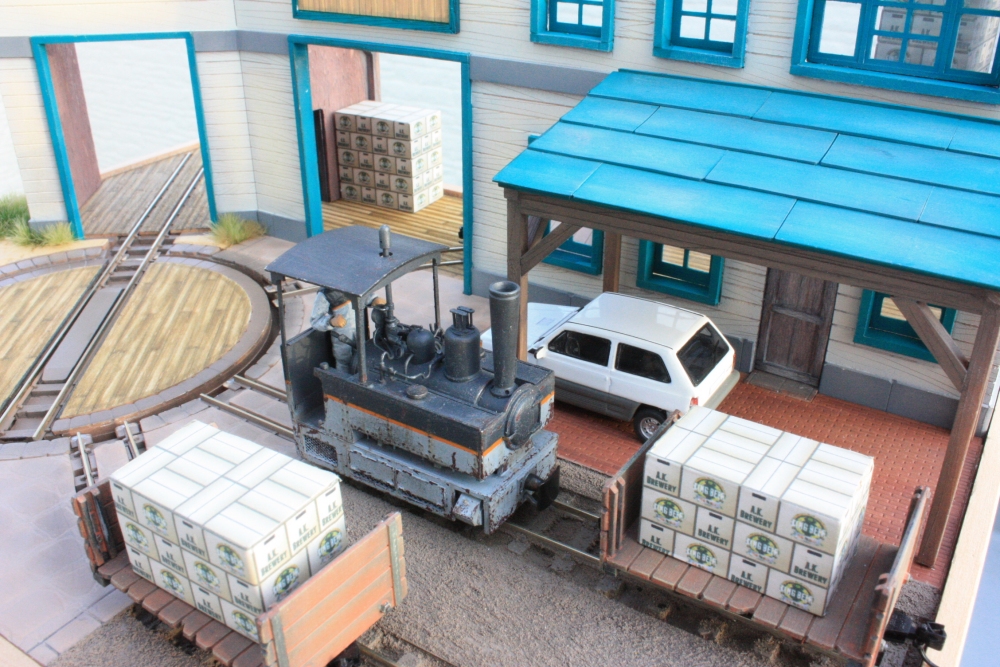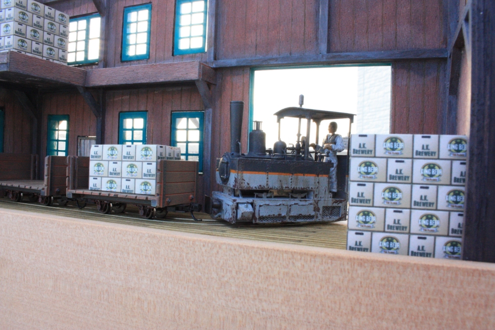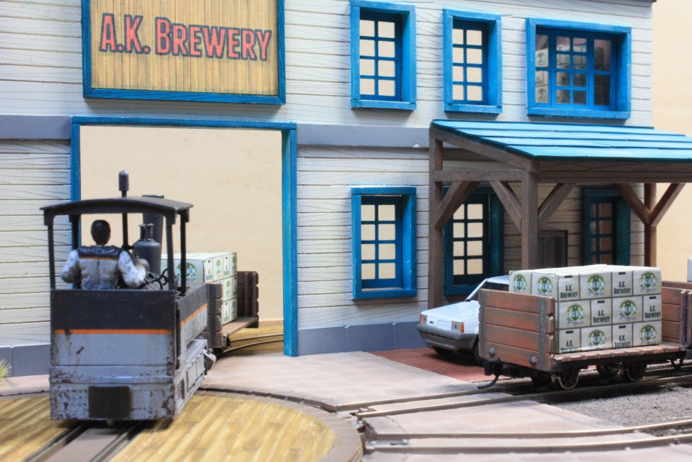 A.K. Brewery (2) Category:A.K. Brewery (1/64 9mm) Date:2012年10月14日 『A.K. Brewery』 って?要はこのビール工場の社名。 レイアウトに名前をつけようにも鉄道路線ではありません。 あくまで工場から出荷されるビールケースを倉庫からひっぱりだしてきてくるだけの、『名もなき軌道』です。 ヤードにはすでに工場から引き出され、トラックに積み替え待ちのビール箱を乗せた貨車。 出来立てのビールを乗せ、敷地に引っ張り出される次の貨車。 工場内はダンボールが山積み。 そろそろ日が暮れてきた。 これで今日のところは終わりにするか。帰ってA.K.ビール飲むかぁw PR http://akinoritb.tou3.com/Entry/14/A.K. Brewery (2)