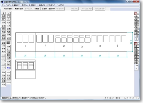 続いて客車の方ですが、2分割して2両に増やすことに。妻面を自作するため、JWWで罫書き用に作図。3枚を重ねてヘッダーとシルに帯材貼れば、左下のようになるハズ。