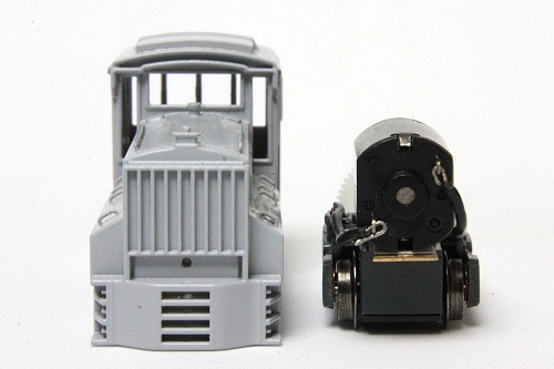 トーマモデルワークス酒井8トン(1) Category:TMW 酒井8トン (1/87 9mm) Date:2013年01月20日 さて、今回は「さいたま鉄道模型フェスタ」で入手した、トーマモデルワークスの神岡の酒井DLです。初めての3Dプリンティングの製品です。光硬化樹脂を積層して整形する流行りの製造方法ですね。 3Dプリンティングは思ったよりもシャープ。出力にはshapewaysのサービスを使うようです。ただ、積層で出力されますので表面には独特のスジがあります。目立つ箇所だけペーパーでならしておきました。製品は手すり類もモールドされていますが、0.3mm線でリプレースしました。本製品はボディだけですので、動力を別に調達する必要があります。KATO製Nゲージ動力台車と、カプセルプラレールのゼンマイを分解して取り出した平ギアを使った動力ユニットを試作してみました。モーターはアルモーターブラックタイプを採用。ボンネットの内幅が9mmしかありませんのでそこに収めるためにアルモーターは縦方向にマウントするように、真鍮の端材でステーをつけて、動力とネジ止めしています。なんか、真鍮パイプで延長したモーター軸が戦車みたいでカッコイイw正面から。モーターはボンネット内に収まりそうですが、動力ユニット自体の高さが…。(画像クリックで動力ユニットの位置を表示)ボディに収めてみると…ウム、やはり動力ユニット自体の高さがNGです。これじゃ腰高すぎでカッコ悪し。この試作1号機は平ギアでの減速で非常に音も大きいので、改良することにします。真鍮パイプからプーリーを削り出し…、試作動力2号機はベルトドライブ方式になりました。モーターは一回り小さいクラフト製のモーターを採用。ベルトはゴム車輪から。モーター軸側はシリコンチューブ+ガイド、ウォーム軸側は自作プーリーです。径が小さくほとんど減速できていません。再び正面から。今度は収まりそうです。(画像クリックで動力ユニットの位置を表示)サイドから。バッチリでしょう。ボディ内にもまだ空間がありますので、ウェイトを積む余地もあります。動力ユニットの動作試験結果は動画にて。 PR http://akinoritb.tou3.com/Entry/22/トーマモデルワークス酒井8トン(1)