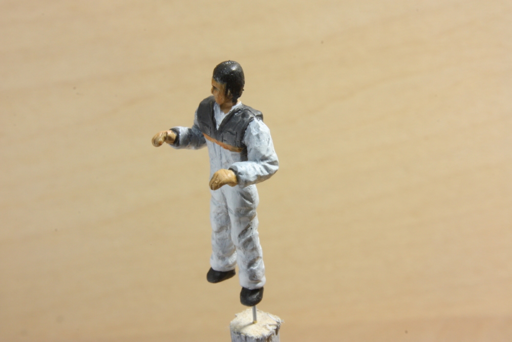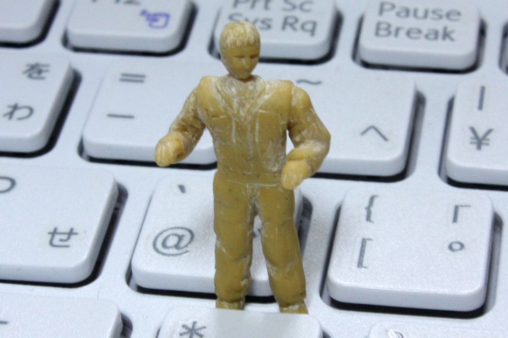 ドコービルのトラムを作る(4) Category:Decauville tram (1/64 9mm) Date:2012年06月09日 ドコービル3トン、トラムバージョンの続き。 フィギュアまでスクラッチするのは初めてです。 Sスケールの人形が売られているのを見たことないなぁ…と、 じゃ作ってみるか?ってことでエポパテをネリネリ、ナイフでコリコリしてみました。 で…首、ズレてるよなぁ…肩張ってムキムキだなぁ… この状態で、コダワリ派ナローモデラー兼フィギュア彫師の栗島堂店主に見ていただいたところ、 「ぐはは、ケンシロウみてぇじゃねぇかwww」 とお褒めの言葉をいただきましたw。ヨッシャ(^o^;) ついでに2,3アドバイスをいただいて、家に帰って北斗神拳の伝承者ではなく、フツーの人間になるよう修正です。 ズレた首は一度切り離して、真鍮線の芯を入れて角度を見ながら再度接着。 洋服のシワを彫り足しつつ、多少スリム化するも、肩幅はいじりようがない。 あきらめてサフで下地吹きのあと、アクリルガッシュでちょいちょいと陰影をつけながら塗装。 ユニフォームは搭乗機に合わせることにしました。 ディーラーの作業つなぎのようなイメージになったかな? 身長は27mm。頭髪を黒にしてしまったので、結局、東洋人となりました。 だってケンシロウだからなぁ…。 キャブ内での収まり具合はもちろんOK。 これで、今回は完成としたいと思います。 PR http://akinoritb.tou3.com/Entry/5/ドコービルのトラムを作る(4)