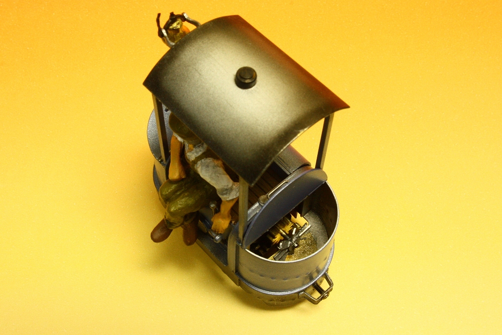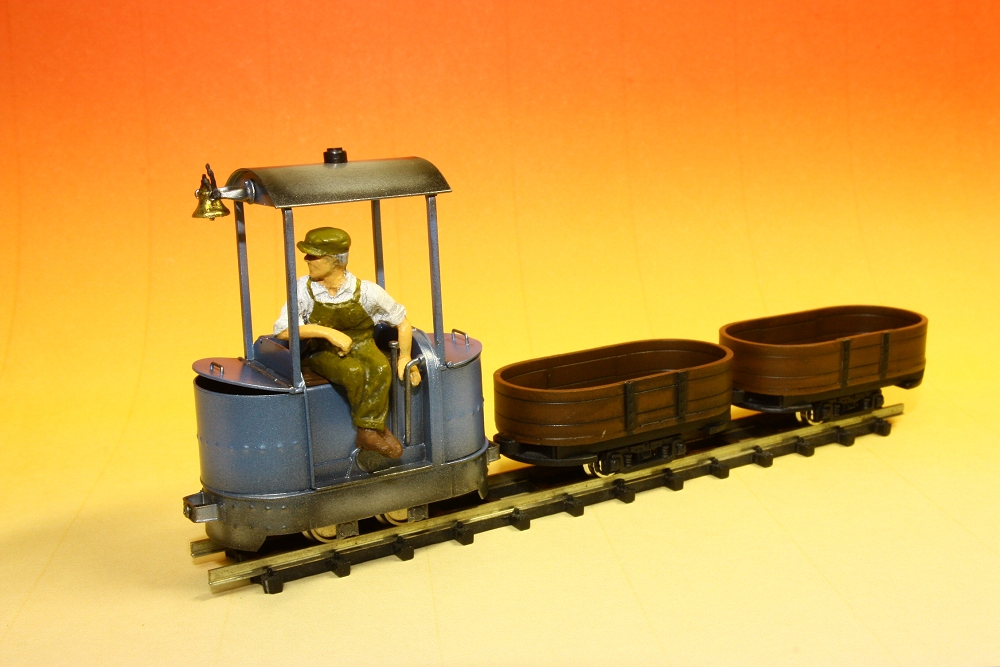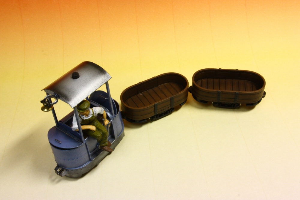 開くと楽しい(3) Category:Jung MS131 type(1/48 9mm) Date:2014年06月04日 さて、イベントなどで中断しておりましたが、ユンクの機関車を模したDB号を塗装しました。 ホワイトメタル製のフィギュアがウェイトになり、左右のバランスが取れません。走行するとすぐに転倒してしまうので、サイドフードの中にもウェイトを貼りこみます。やっぱり開くと便利じゃないか。 ボンネットのうち、片方は動力ユニットのモーター軸が飛び出ています。フライホイールでもつけようかと思いましたが、パーツ箱の中に以前何かの試作で作った紙製のプロペラを見つけましたので取り付けてみました。空冷ファン・・・ではないのですがフタを開けていると、単に回っているのが見えて楽しいのです。 お供の貨車はまるで曲げわっぱのお弁当箱のようです。積荷のご飯とおかずを作るか・・・。連結には丸磁石を使っており、機関車のカプラはただのビスです。なんとこだわりのない工作ですこと。 さて、また「よくわからない軌道の上を走る何か」が出来てしまいましたが、今回は"バーナーはんだづけ"と"開閉するフタ"を試してみようという思いつきをやってみた結果ですので自己満足。結局、ワタシは工作をしていたいだけなのかもしれません。 PR http://akinoritb.tou3.com/Entry/53/開くと楽しい(3)