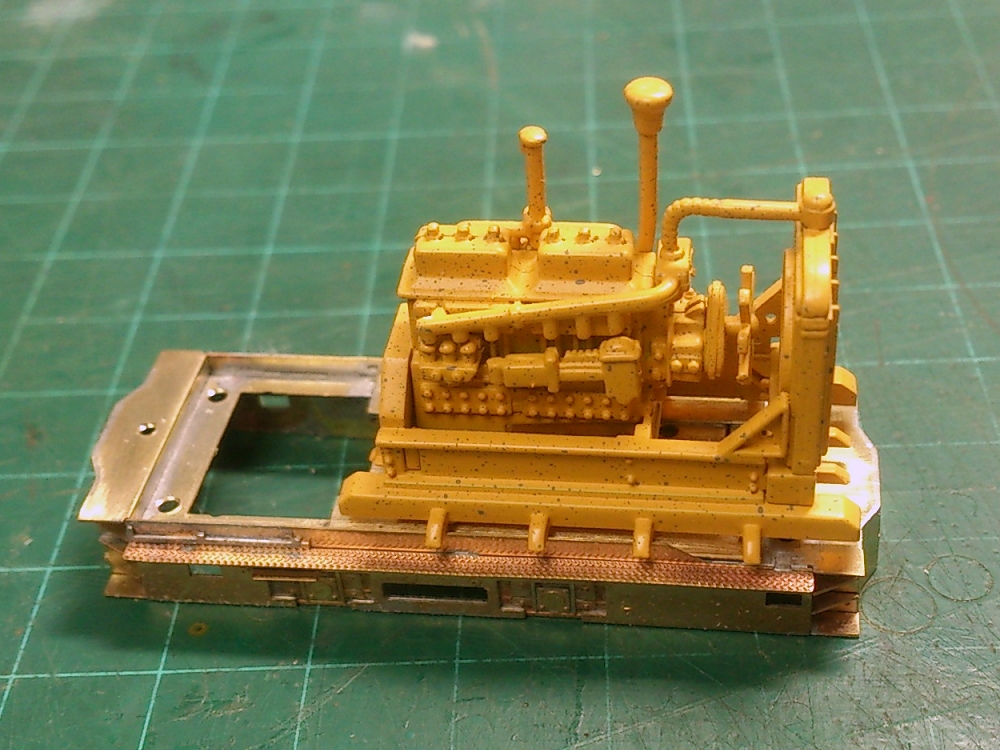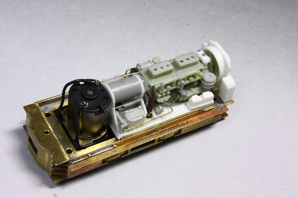 松岡10tDL(2)エンジンブロック製作 Category:松岡10tDL(1/87 9mm) Date:2014年09月14日 さて、ボンネットフルオープンにすべく松岡10トンDLのエンジン回りの工作を進めます。 ロストのエンジンパーツがほしいところですが、生憎持ち合わせなし。HOスケールの貨車の積荷のディーゼルエンジンがパーツストックにありましたので、あてがってみました。エンジンユニットを切り離せば使えそう。 GMキットの切れ端やら、プラクズをペタペタ貼ってなんとなくカタマリになりました。そこはかとなくインチキ臭のするエンジンですこと。マニホールドの位置は右側に変更。その他、コンプレッサー、エアクリーナー、バッテリ、燃料タンク、砂箱などなんとなくそれらしく。「一体この部分はなんなんだよ!」的なご指摘もありましょうが、目を細めて雰囲気で眺めていただきたいところ。 ボディーの工作も進めて、エンジンユニットの収まりをチェック。ステーの曲げはダルダルだなぁ。 キャブはドアを開けた状態にしたいところですが、縦に置いたモーターが丸見えになってしまうので、キット通りクローズ状態としました。 サイドの配管は目立ちますので、真鍮線で簡易的に再現。カプラーはキットの組立式ではなく、パーツボックス在庫のロスト。取り付け位置が違いますがケーディーカプラーに換装も可能にするためにネジ固定でつけられるようにしました。色がつけばもう少しマシに見えるようになるかな。 PR http://akinoritb.tou3.com/Entry/61/松岡10tDL(2)エンジンブロック製作