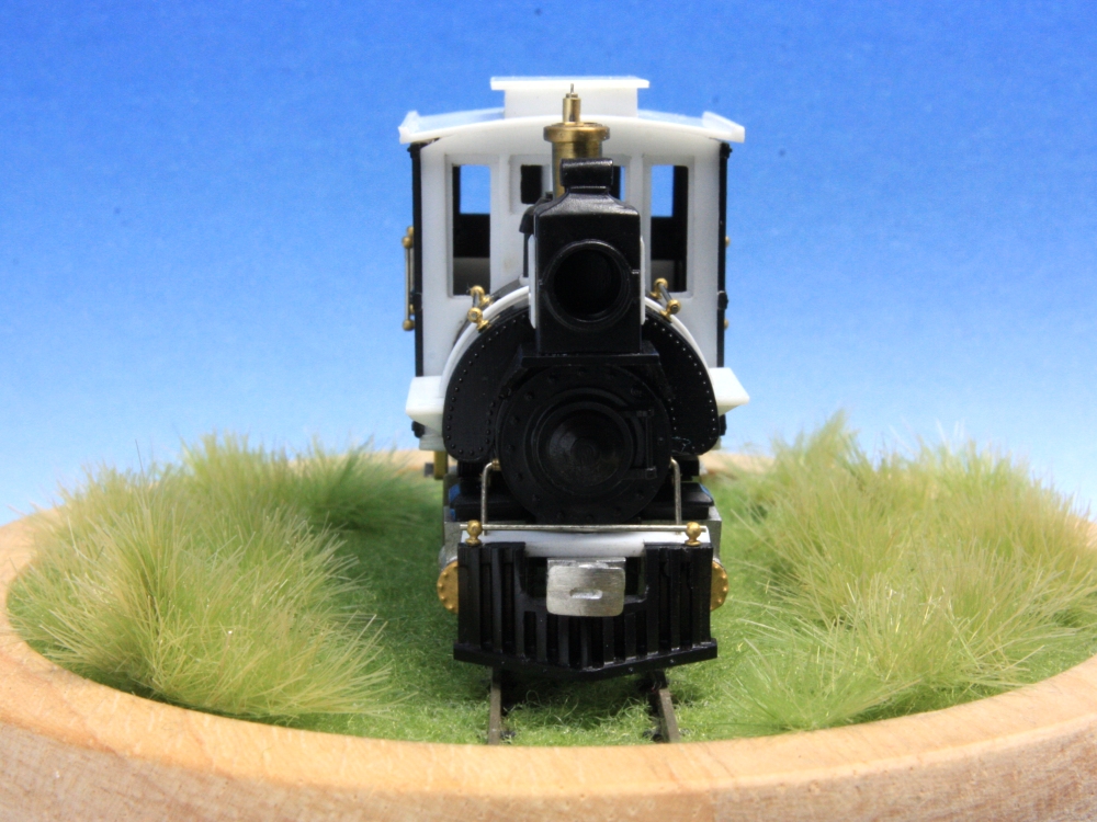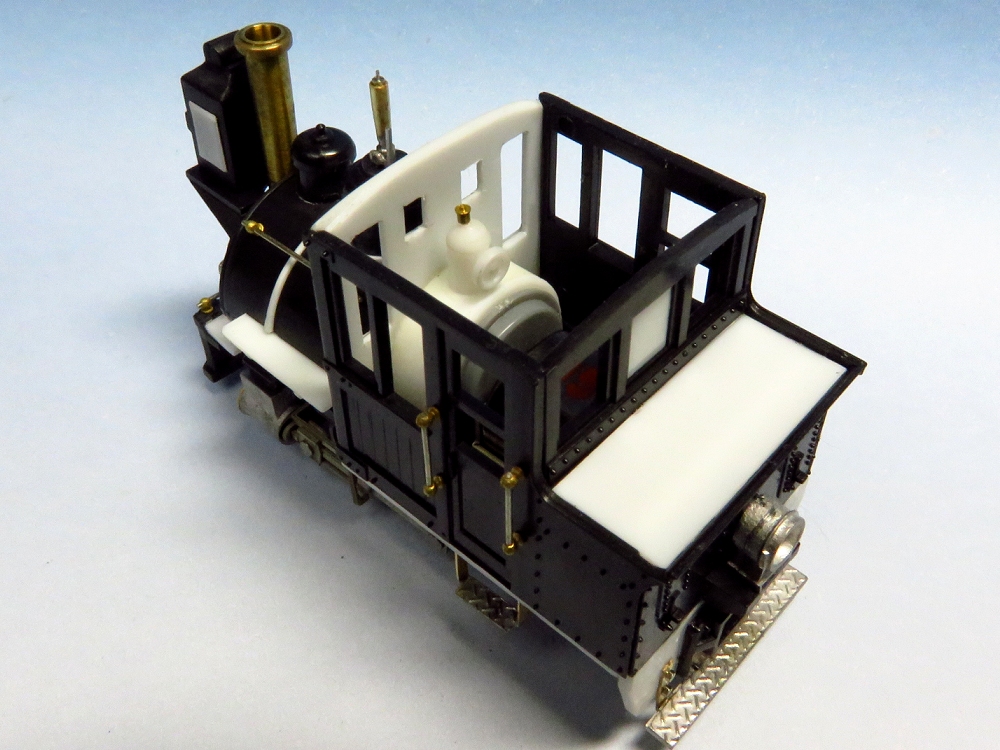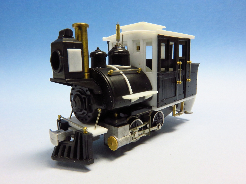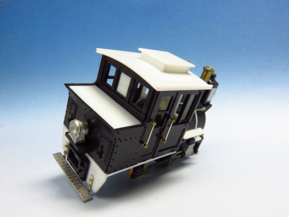BLWサドルタンク・ミニ(2) Category:BLWサドルタンク・ミニ(1/87 9mm) Date:2014年12月07日 前回に引き続き、サドルタンクの追加工作をやっていきます。 このアルモデル動力装置の1段目の平ギアは黒染されていませんので、キャブ内でもギアの真鍮色が見えてしまい、割と目立ちます。そこでキャブ内にバックプレートを模したパーツをこさえて、ギア部分を隠すことにしました。これは見た目にも効果あり。各部の手すり、ステップ、汽笛、シリンダ周辺などをパーツや線材を使って追加していきます。手すりはエコーのパーツと0.4mm洋白。ステップは1.0×0.2の真鍮帯材に縞鋼板の切れ端をハンダ付けしたもの。 ルーフはとりあえず通常タイプ。リアエンドにはステップを増設。ステップ基部にはHI-Qパーツの0.7mmボルトを植え込み。 パーツが増え、モケイの表面の情報量が増えてくると作り手としては充足感がでてくるんですよねぇ。 フロントビューはそれなりに低く抑えられたのではないかと。 サイドにはステップを付けることで、「しりあがり感」の緩和に貢献しているようです。さて、次回は塗装かな。 PR http://akinoritb.tou3.com/Entry/67/BLWサドルタンク・ミニ(2)