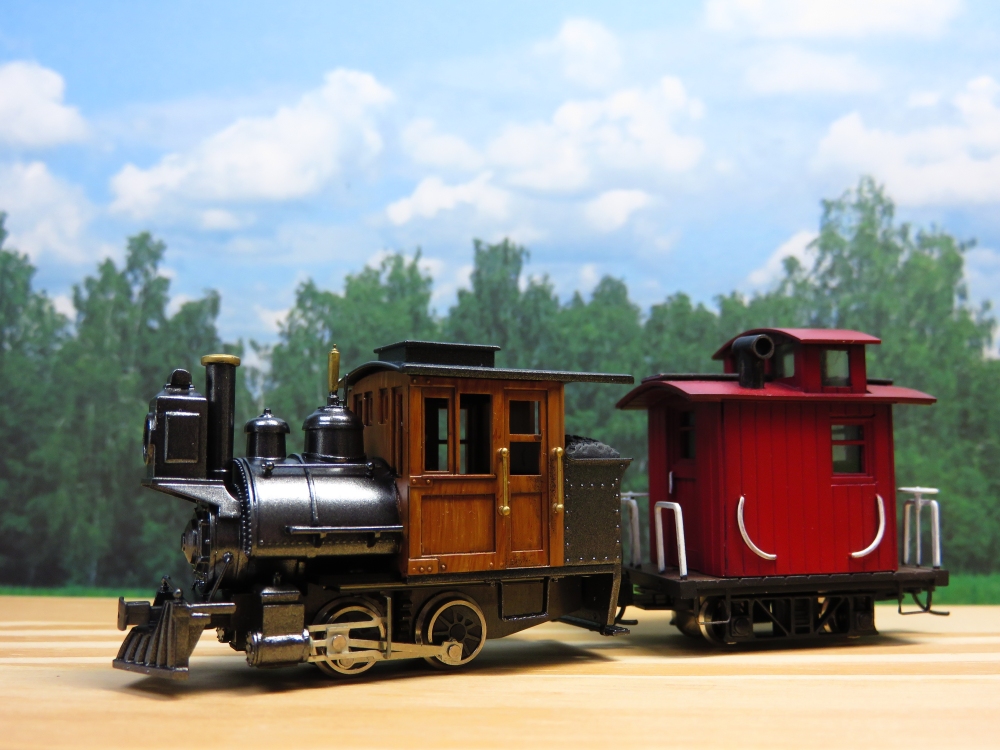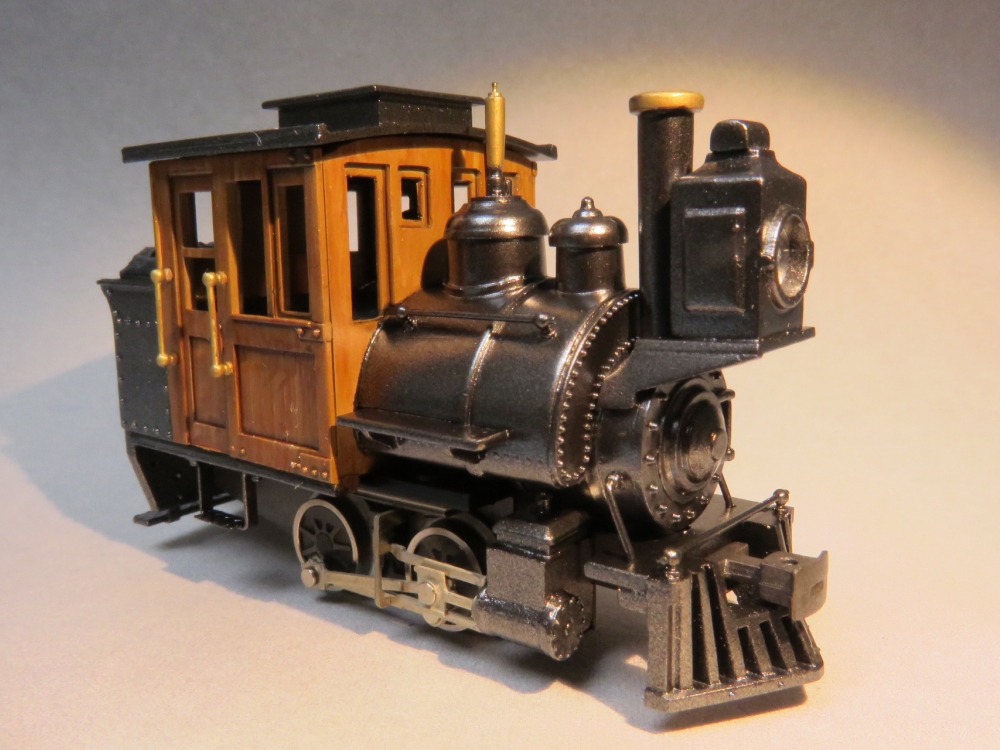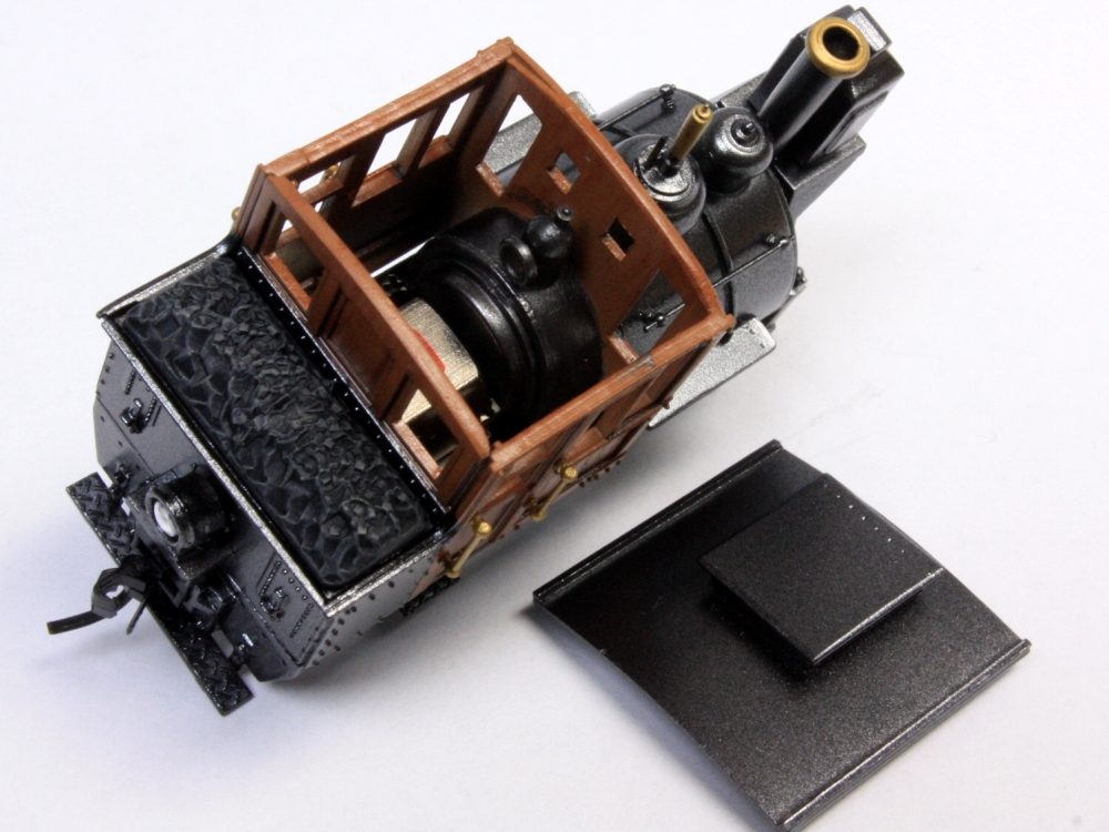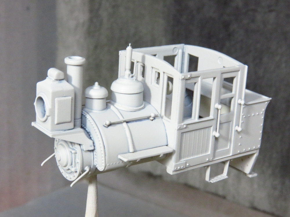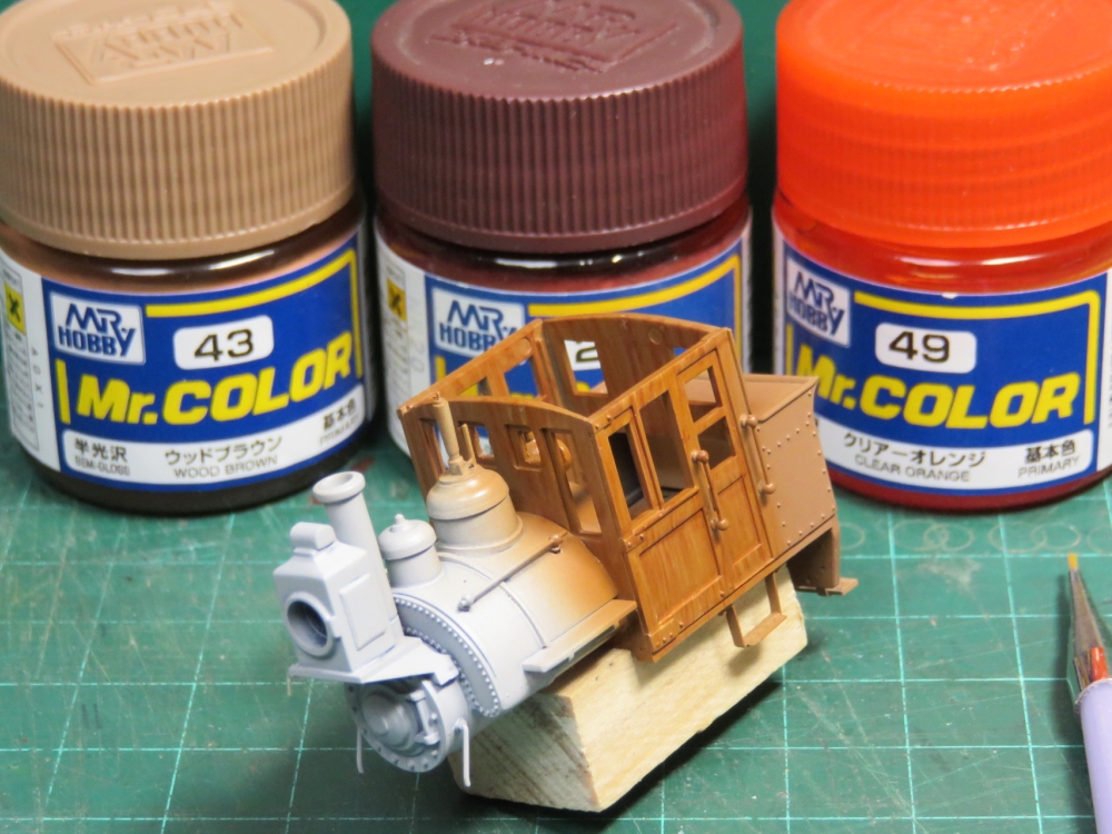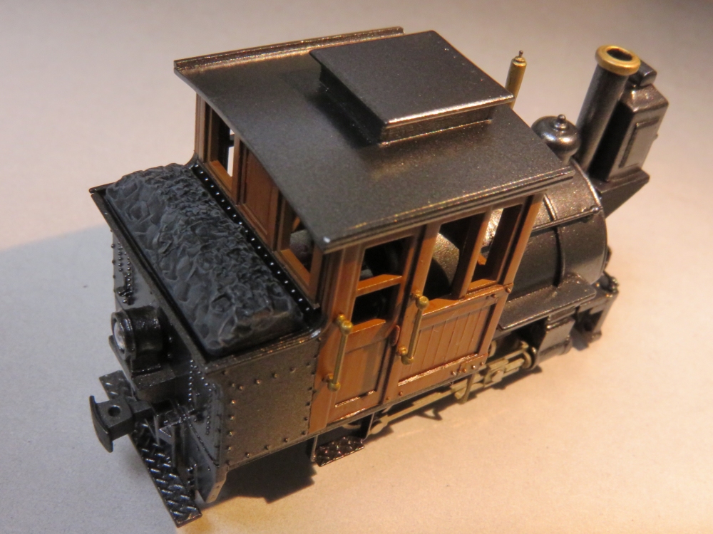 BLWサドルタンク・ミニ(3) Category:BLWサドルタンク・ミニ(1/87 9mm) Date:2014年12月14日 さて、完成へ向けていよいよ塗装です。で、もちろん黒やグレーを吹いて終わり!ということはありませんよ~。 まずは、切った貼ったの材質の違いを隠ぺいすべく、グレーサーフェサーで下地塗り。 続いて、特にマスキングはせずにキャブ部分にウッドブラウンを吹きます。今回は塗装で木製キャブに見せようというプランです。複数の茶色系塗料を塗料皿で調合しながら、面相筆で木目を一本一本適当に描いていきました。最後にかなり薄めたクリアーオレンジを吹いてコートします。これがポイント。クリアニス塗の風合いを出してくれるのと、オレンジのフィルターがかかることで適当に描いた木目が落ち着くのですよ。 キャブをマスキングしたら、車体の鋼製部分を塗って仕上げます。今回は艶消し黒は禁止。ちょっと冒険してグロス・メタリック系。ベースにブラックを吹いたあとは、コバルトブルーとスーパーブライトアイアンで青黒く輝くシャイニングボディじゃ~!! どうなるかと割とドキドキして吹いてみたのですが、思ったほどキツイ色あいにはなりませんでした。おまけに期待していたブルーな感じはなく、コバルトブルーさんドコ行ったの?状態。カメラで撮影した画像はメタリックの粒状感が目立ちますが、肉眼で見ればあまり気にはなりません。 動力のギア隠しのために作った簡易バックプレートは、やはり効果アリだったようです。プラキットに入っていた炭庫上部の石炭パーツは・・・今一歩の造形。ココはいずれ気が向いたらやり直せるよう、両面テープで貼り付けただけにしておきます。 寸詰まりの「ダの子」には、以前作ったGNOMYスタイルのカブースを従えると似合うかも。 う~む、なんというオモチャ風情。狙い通りです(笑)ちなみにロングルーフ仕様。 スポットライトの中、シックに佇むブサカワ機関車。ウィスキー片手に、というよりカシスオレンジサワーを飲みながら愛でるのが正しい鑑賞法。 というわけで、今回もまじめに不真面目な工作を楽しんでみたのですが如何でしたでしょうか。ではまた。 PR http://akinoritb.tou3.com/Entry/68/BLWサドルタンク・ミニ(3)