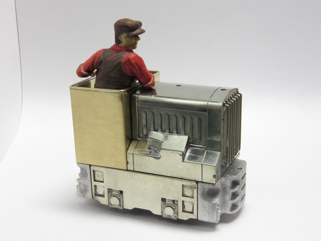 細倉鉱業2tGL(2) Category:細倉鉱業2トンGL(1/48 9mm) Date:2015年01月11日 細倉鉱業2tGLの続きですが、結局、辛抱たまらず改造を始めてしまいました。坑内機関車なのでしょうが、シンプル過ぎる運転席はどうにも。 まずは、簡便な座席をつけてみました。キットに座席は入っていませんので真鍮端材からちょいちょいと。あえて横座りに。本来は立って操縦するのでしょうね。これはこれで軽快な感じはしますが、物足りない。 そこで…ドン!オープンキャブのまま周囲を囲ってみました。狭いねぇ。 なんとなく見慣れたフェルトバーンスタイルになりました。 運転士は横座りですので、開口部は片側のみの仕様。 おじさんの収まりも良いようです。 サイドと後部妻板にはもう少し装飾要素が欲しい気もします。ライトでもつけましょうかねぇ。今後は細倉鉱業ではなく浅野物産のガソリンロコがベースの改造機という設定で続けましょう。 PR http://akinoritb.tou3.com/Entry/72/細倉鉱業2tGL(2)