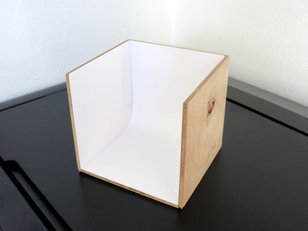 ブログのちょっとしたスナップを撮影するのに、いつも机の上を片付けなきゃならんのが面倒です。そこでミニ撮影ブースをこしらえました。