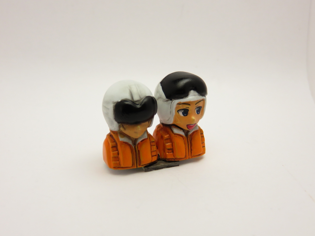 パイロットこけし2個を航空レスキュー隊的な色合いの服装で塗装。