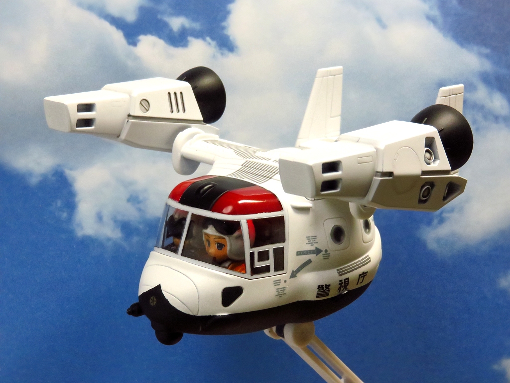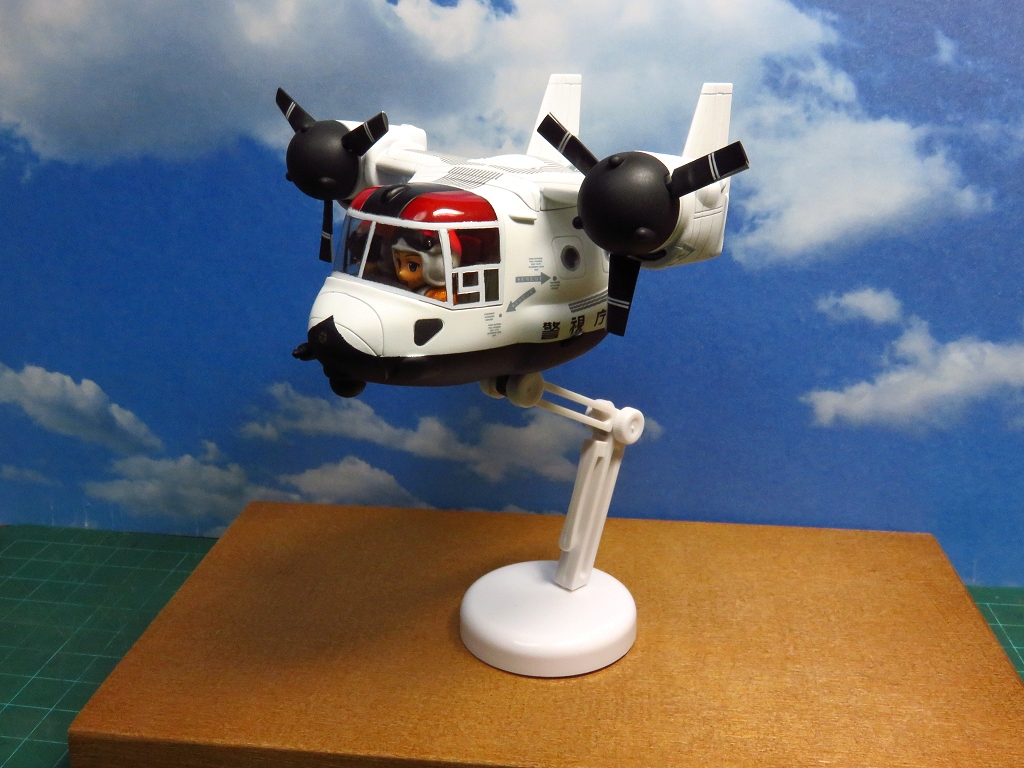 さて、ジオラマは仕上げ工程を残すのみとなってきましたので、息抜きに、仕掛り中だった、たまごひこーきオスプレイを先に片付けましょう。パトカー!?
