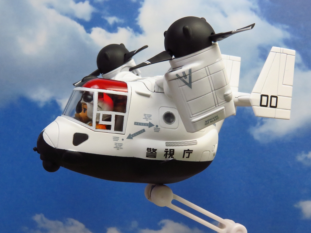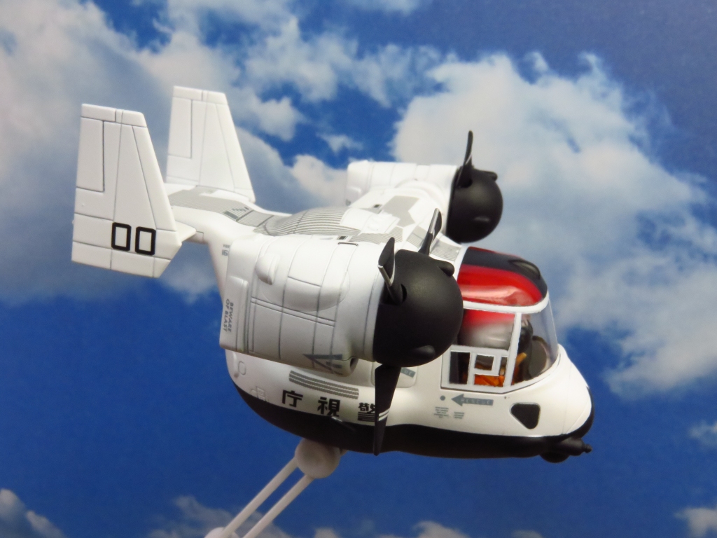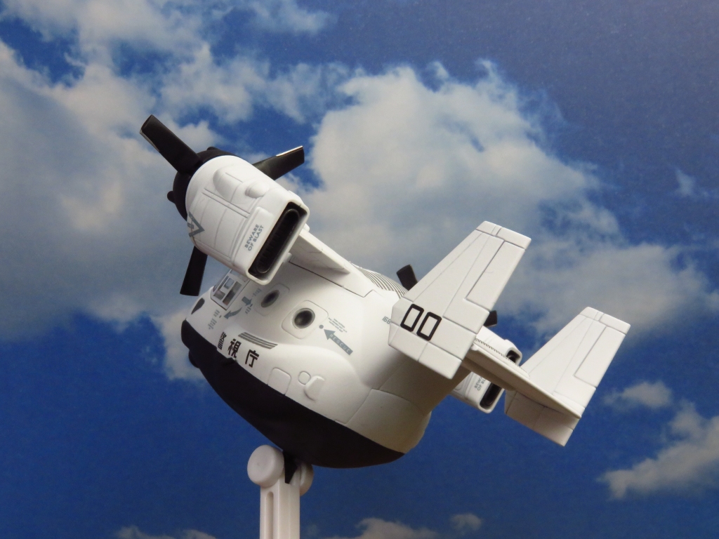 じゃ、オスプレイを警察がつかったらパトカー色だよね的な発想で塗ったわけですが、警察組織には航空隊が普通にあるわけで、決してKC庁の航空機はこんなパトカー色ではないのでした。