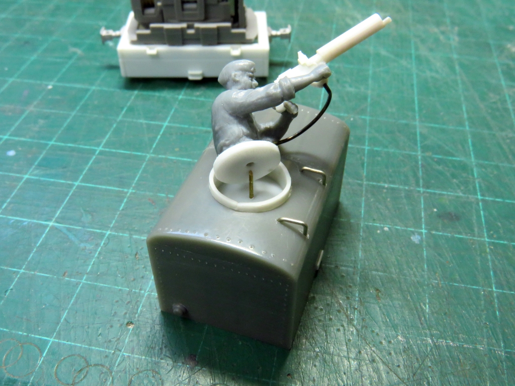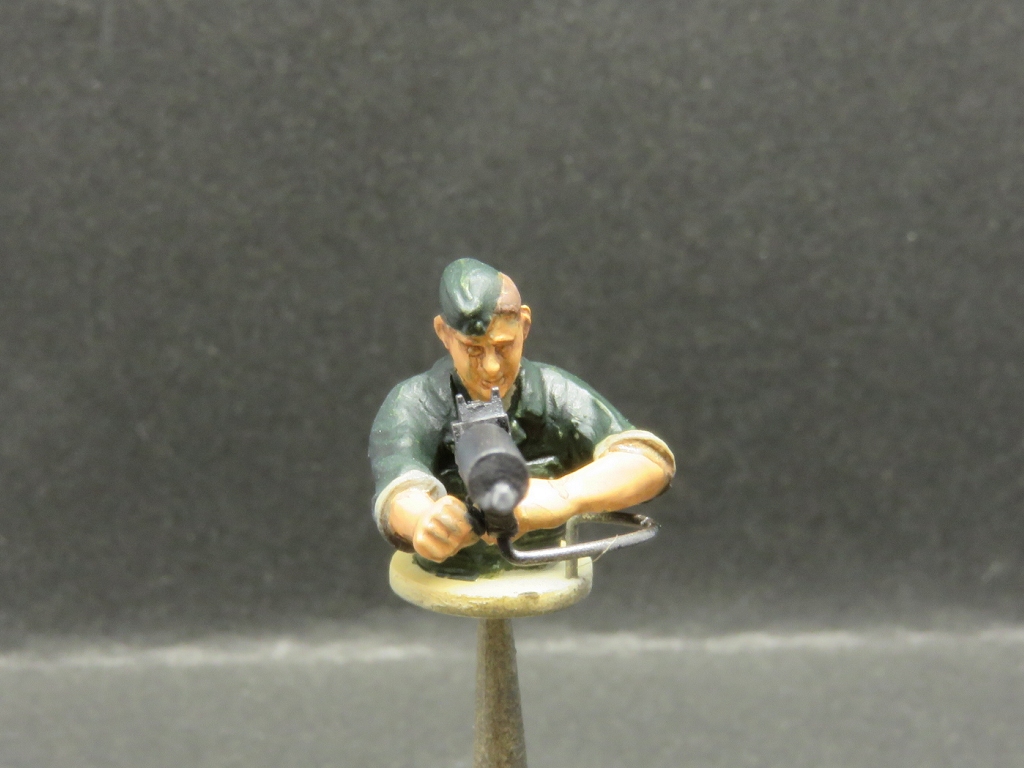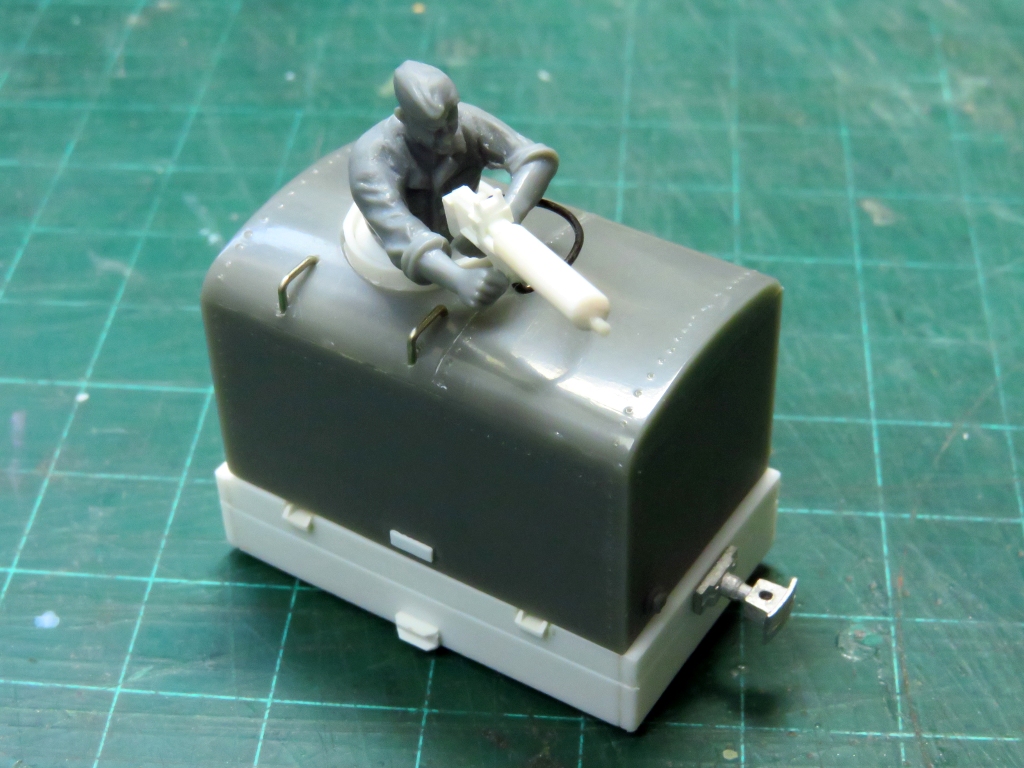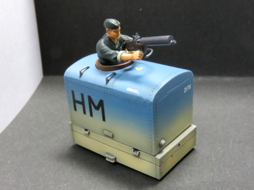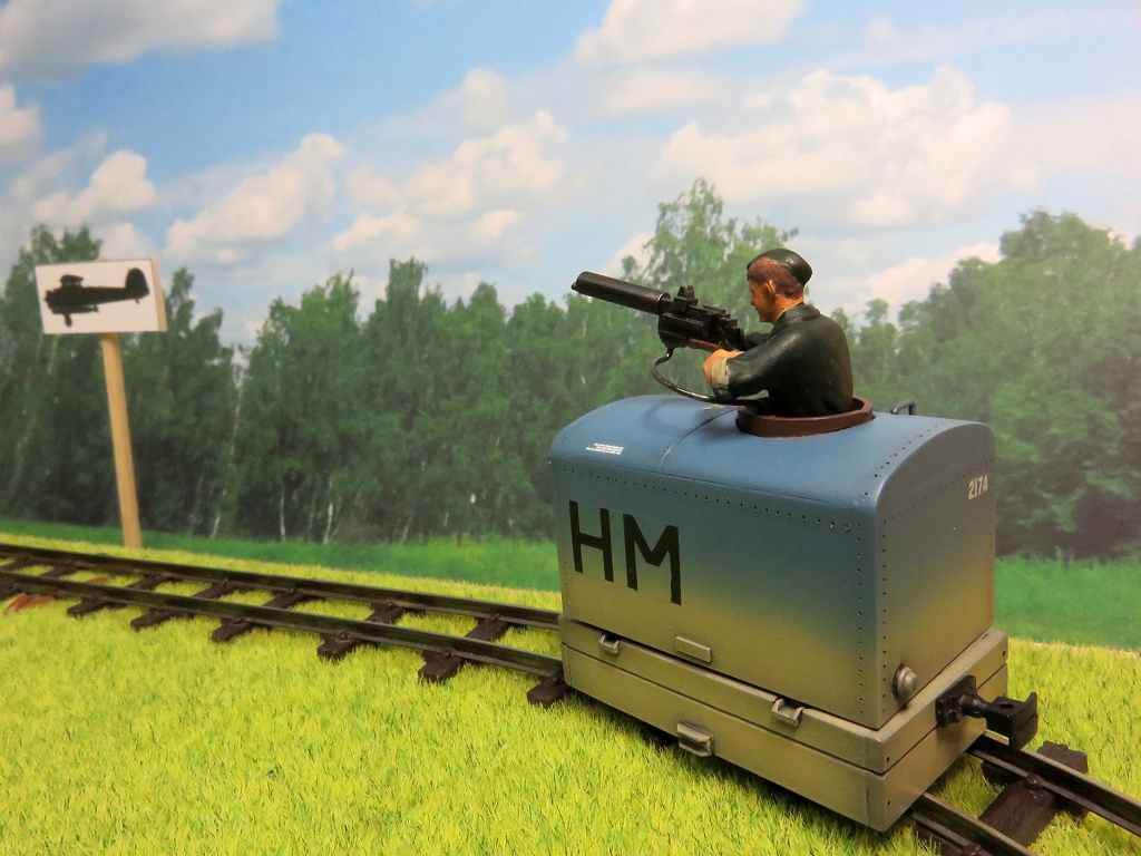 はこてつ動力の使い道? Category:Pilot Training Critter(1/48 9mm) Date:2015年05月02日 「はこてつ動力ユニット」が発売されていましたので買って来ました。ナローの動力にうってつけなのですが、その形状から、ふと思い当たる変なモノを作ってみました。<5/2 追記> パッケージはこちら。(中身撮り忘れた。笑)鉄道むすめとかのフィギュアの頭を載せて遊ぶのが正しい遊び方らしいです。ふーん、フィギュアねぇ。 まずは足回りをプラ板で。 WW1の複葉機の時代のような機関銃をプラクズから作ります。あまりディティールはこだわらず。 1/48のドイツ系タミヤ人に持たせてみます。いい感じです。はこてつ動力の屋根に穴をあけて、コクピットみたいな風情に加工しました。 下回りにかぶせると、完成~。アホくさ(笑) 機関銃を空に向かって構えた航空兵・・・ホントはWW2の戦車兵さんはピンで刺してあります。これで向きが変えられるよ。 ちょっとまじめに塗ってみました。迫真の画像です。戦車兵だけど。 そして塗装して多少のデカールを適当に貼って完成~。なんじゃこりゃ。 実は今回のネタ元はネットで見つけたこの画像。WW1の時代のパイロット用射撃シミュレーターだったのです。戦闘機のコックピット+機関砲がセットされた車体に乗り込み、カーブ通過時のGとか振動なんかを取り入れて射撃のウデを磨いていたのでしょうねぇ。しかし、この車両はどうやって動いていたのでしょう。貨車を押して下り勾配を滑走?バッテリーロコ?ケーブルカー?なんとも興味深い写真です。<5/2 追記>Twitterで「これ第三軌条じゃないか?」「コレクターシューついてるぞ」とのレスをいただきました。おぉ、確かに。バテロコではありませんでしたねぇ。<5/2 追記おわり> ということで、的なんか作っちゃたりして。〇ードフィッシュのシルエットですかね。敵は某キングダム。こちらは帝国って設定で。ぴよ。 はこてつ動力を見た瞬間、前の写真が再現できる!とピコーンときましたので勢いで作ってみました。どうせなら、好きなようにカラーリングして飛行機のデカールとか貼ってしまえ!車両は自走するバッテリーロコということにしておきましょう。→第三軌条方式の電動トロッコでした。以上、間違った「はこてつ動力ユニット」の遊び方でした~。ついでに動画撮ってみました。よくわからない箱が自走しているのは何ともシュール。 PR http://akinoritb.tou3.com/Entry/85/はこてつ動力の使い道?