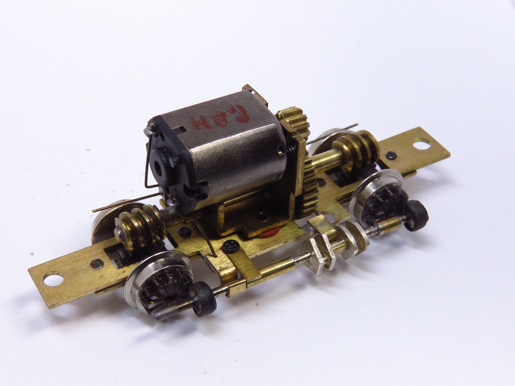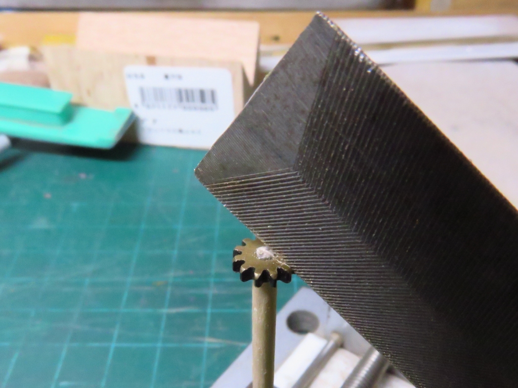 ちびシェイ(2) Category:Little SHAY(1/87 9mm) Date:2015年06月14日 一見、大して工作は進んでいないように見えるちびシェイ君ですが、なんとかクランクとシャフトを動かすことができたようです。 諸兄ご存じのとおり、シェイ式ギアードロコは簡単に言えば、側面にマウントされたエンジンからシャフトを通して車輪側面のべベルギアへ駆動力を伝達して走行するワケです。今回は逆に動輪から駆動力を得て、”飾り”のクランクとラインシャフトをフリクション伝動で回すことにします。で、摩擦係数を増やすためべベルギアを模したモールドのパーツを手元の平ギヤから作ります。 単に目立てヤスリで平ギヤの側面に放射状のキズを入れただけですから、べベルギヤとしては動作しませんし、形状も違いますが、気分を盛り上げるにはこのニセべベルギヤでもそれなりの効果があるでしょう。 先ほどのニセべベルギアを車輪にエポキシ接着剤でぺったんこ。杉山模型さんのオモシロパワー27(だったモノw)にシャフトをフック形状のガイドを使って支えてやれば動力ユニットの完成。車輪を擦る部分には熱収縮チューブをかぶせています。ユニット単体での動作状況はこんな感じ↓クランク部分が暴れていますが、車体側につけたクランクケースが押さえになって落ち着くでしょう。 ということで車体にセット。ドキドキの走行試験(注:BGMあり)です。↓上の動画はまともに走行した部分”だけ”をつないでいますので上手くいっているように見えますが、実際はあちこち引っかかっています。まだまだ調整が必要。クランクが動作するようになったので動きは出たものの、スケスケの下回りはフレームか、台枠を組むかしてもうすこしどうにかしないとダメかなぁ。 PR http://akinoritb.tou3.com/Entry/92/ちびシェイ(2)