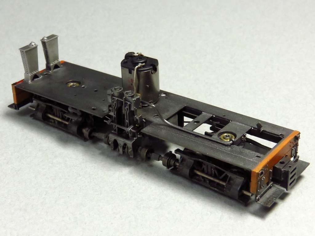 実はこのあと、画像に示す部分(台車をマウントする横梁の部分)をうっかり塗装してしまいました。