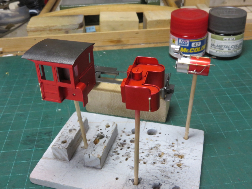 ちびシェイ(5) Category:Little SHAY(1/87 9mm) Date:2015年08月16日 先週のトーマシェイに引き続き、ちびシェイ君も塗装をしました。 フリクション伝動が今一つだったちびシェイ君ですが、まぁまぁ何とか走行できるようにはなりましたので、やっと塗装に入ることにしました。 杉山模型オモシロパワー27を改造した動力ユニットは、全バラシの上で黒染コーティング。塗装してしまうと導通が怪しいし駆動にも影響がありそうですので黒染液を使います。今回の構造では動力が丸見えですので、必須工程です。 ちびシェイ君上回りは、シルバー下地にクリアレッド+蛍光レッドでかなり明るめに調色しました。 ボイラーは真鍮色のままクリアでコート。その他手すり類も磨きだし。金色は赤に映えますのでいいアクセントになるでしょう。 ロッドもついて、堂々とした可愛らしいヤツが完成です。 トーマシェイが全長約89mm、ちびシェイ君は63mm。(カプラー含む)Bトレインショーティのサイズに近いですね。 ちびシェイ君の塗装もトーマシェイと同じ木造キャブ風+ブルーメタリックにするか悩みましたが、あえて色を変えてみました。まぁ前回、Pittsのプラモを塗った時と同じパターンではありますが・・・。 ちなみに今回は引き出しにしまってあった秘蔵のパーツを結構消化しました。・動力ユニット・エンジン・煙突・ドームは杉山模型・キャブはアルモデル・ヘッドライトとカプラーは(確か)仙台のコンさん頒布のもの・曲がっちゃってる汽笛はCalScale・ヘッドマークとツールボックスはトーマシェイ同梱のオマケパーツ・LIMAの銘板はFlyingZooのレアものパーツの使い道が決まると、買っておいた甲斐があるってもんです。走行動画もどうぞです。ちゃんとロッドも動いていますよ~。(注:BGMあり)) PR http://akinoritb.tou3.com/Entry/99/ちびシェイ(5)