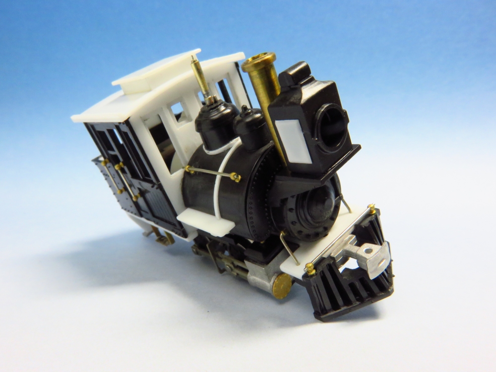 BLWサドルタンク・ミニ(2) Category:BLWサドルタンク・ミニ(1/87 9mm) Date:2014年12月07日 前回に引き続き、サドルタンクの追加工作をやっていきます。 このアルモデル動力装置の1段目の平ギアは黒染されていませんので、キャブ内でもギアの真鍮色が見えてしまい、割と目立ちます。そこでキャブ内にバックプレートを模したパーツをこさえて、ギア部分を隠すことにしました。これは見た目にも効果あり。各部の手すり、ステップ、汽笛、シリンダ周辺などをパーツや線材を使って追加していきます。手すりはエコーのパーツと0.4mm洋白。ステップは1.0×0.2の真鍮帯材に縞鋼板の切れ端をハンダ付けしたもの。 ルーフはとりあえず通常タイプ。リアエンドにはステップを増設。ステップ基部にはHI-Qパーツの0.7mmボルトを植え込み。 パーツが増え、モケイの表面の情報量が増えてくると作り手としては充足感がでてくるんですよねぇ。 フロントビューはそれなりに低く抑えられたのではないかと。 サイドにはステップを付けることで、「しりあがり感」の緩和に貢献しているようです。さて、次回は塗装かな。 PR http://akinoritb.tou3.com/Entry/67/BLWサドルタンク・ミニ(2)
